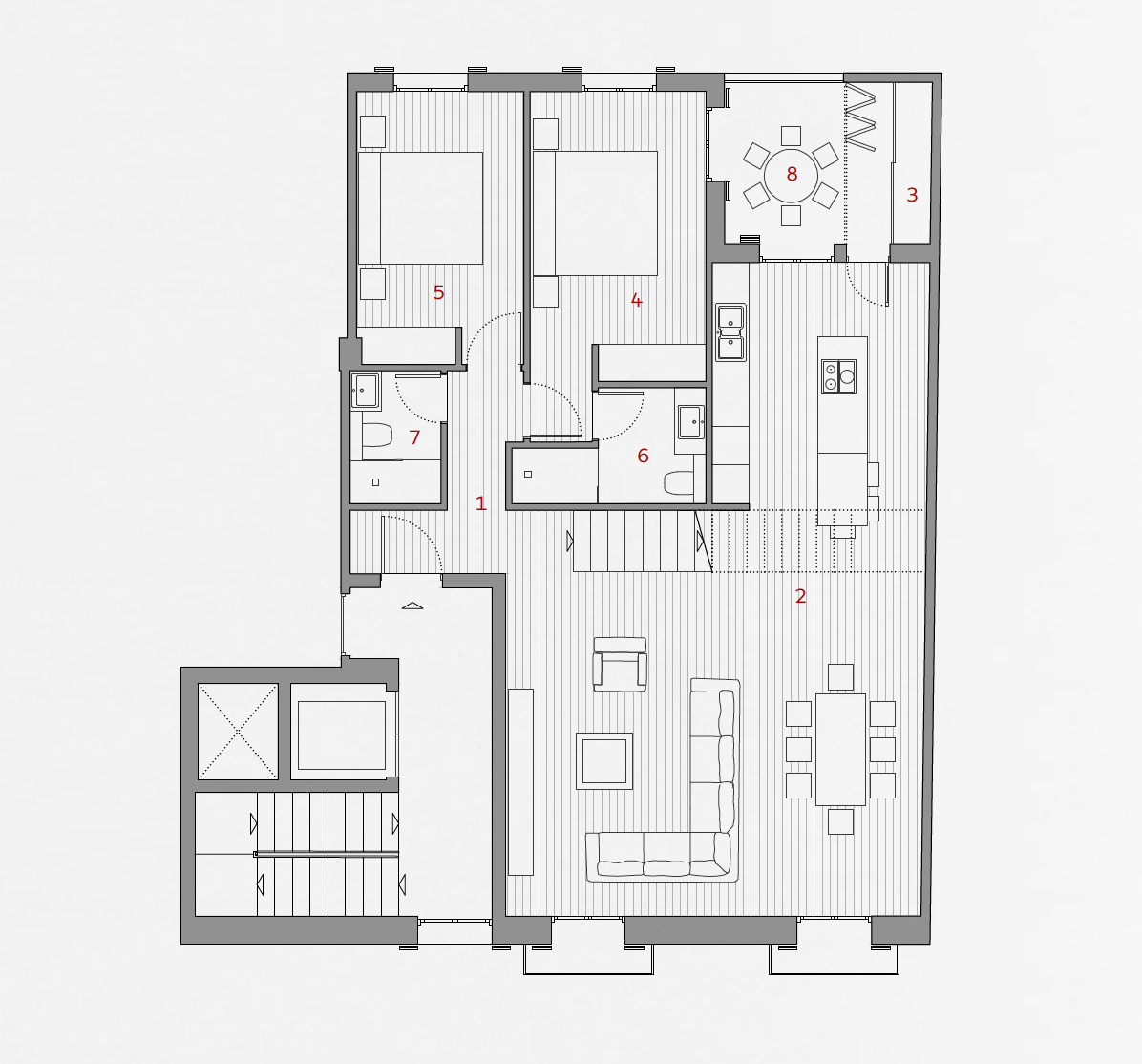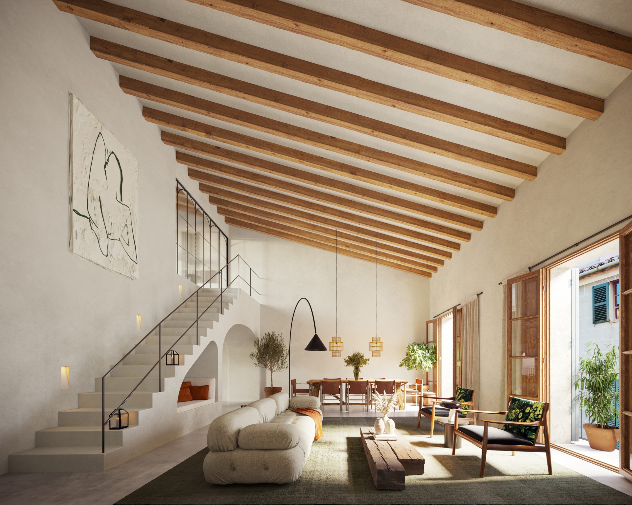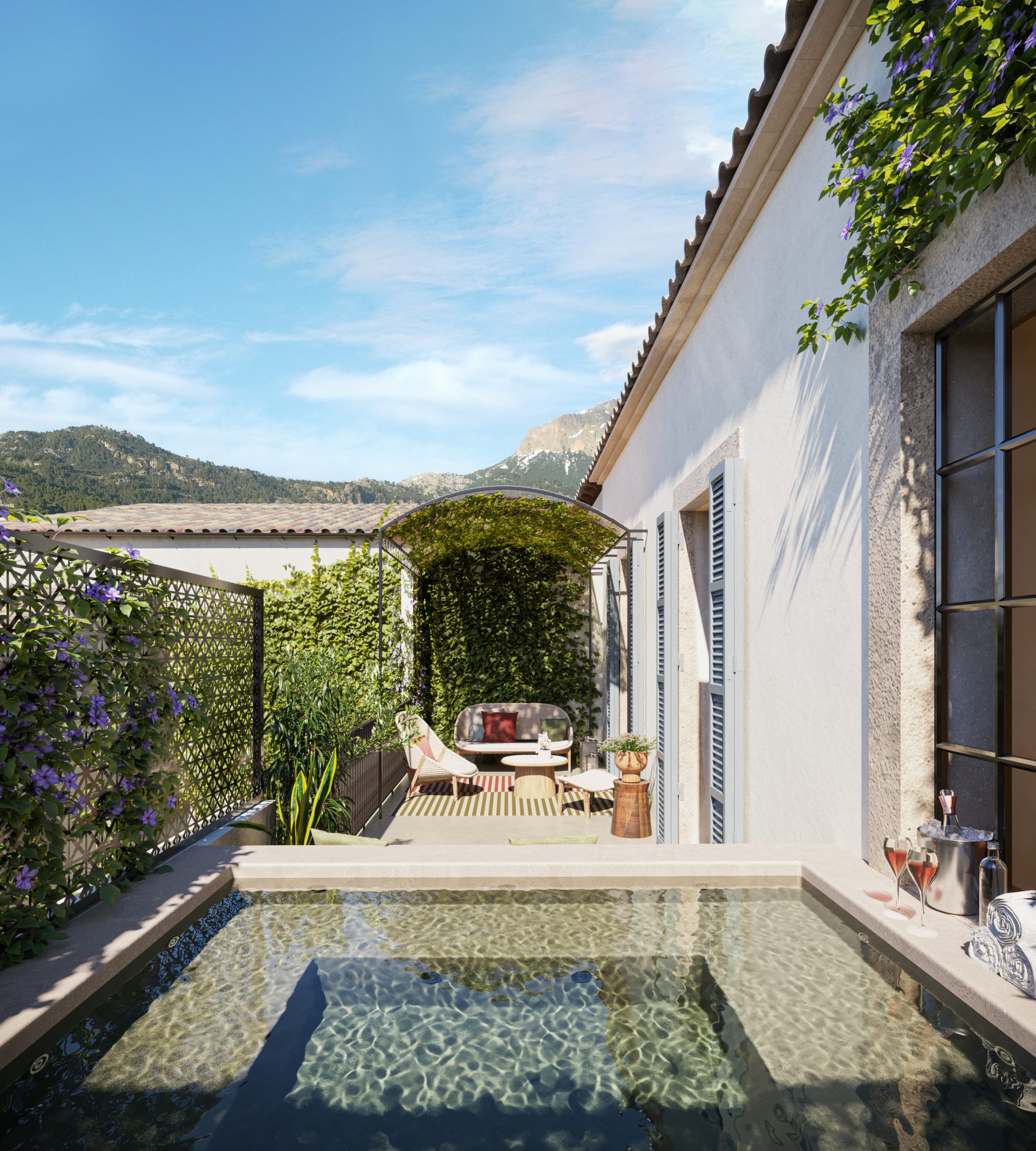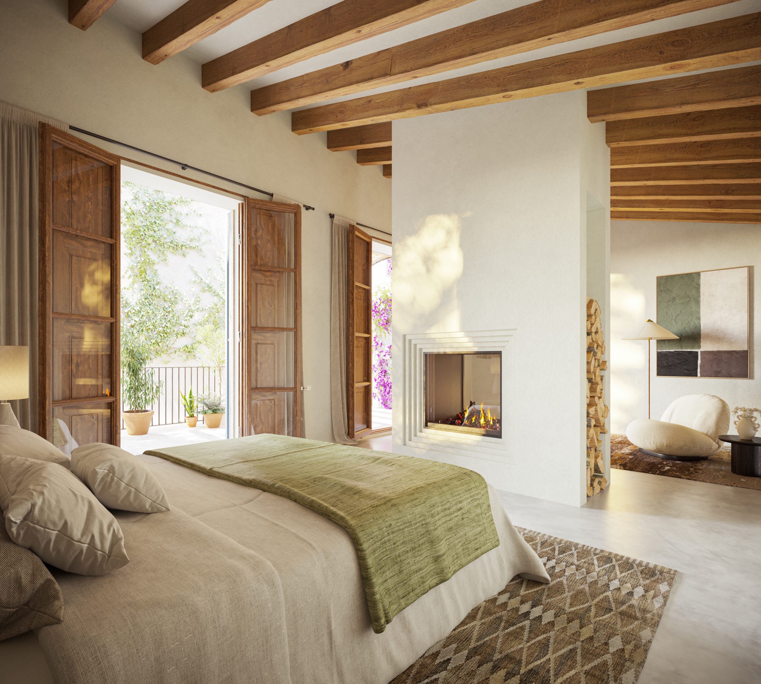 Inspired by Sóller’s muleteers who once carried precious snow from the Tramuntana peaks to preserve food through the warmer months, this residence embodies elegance and serenity. With three bedrooms—including a master suite with dressing room, fireplace, and private terrace—and a striking double-height living area, it’s designed for comfort, style, and connection to nature.